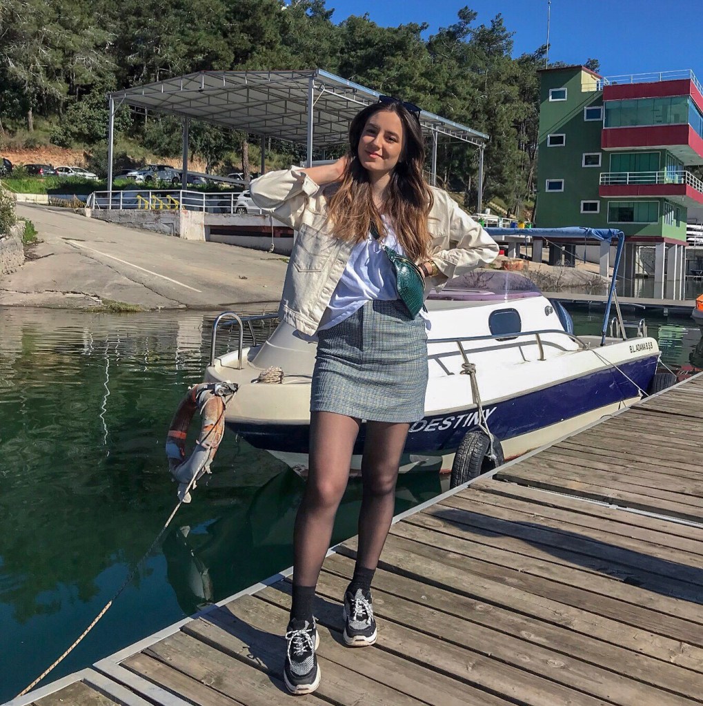 Bij deze outfit koos ik voor een heuptasje in plaats van een schoudertas. Het stond leuk en sportief met de sneakers en maakte de look compleet. Het groene heuptasje matchte ook goed met de geruite mini rok. Omdat ik op de foto ook een groene geruite rok aanheb kwam dit goed van pas. Maar als ik de rok hierboven droeg zou het wel dit heuptasje (hiernaast) geweest zijn.